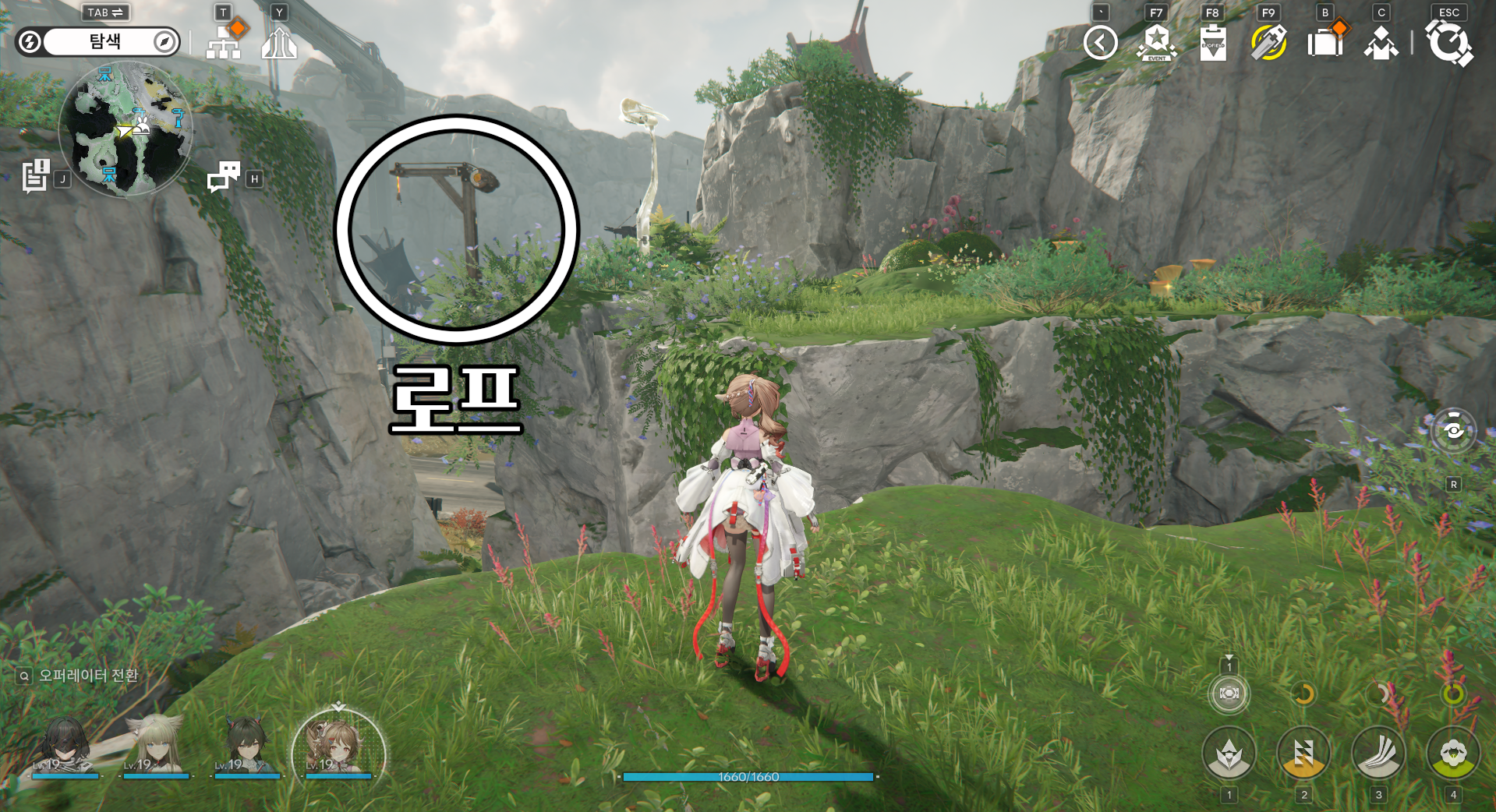 절벽 있으니 달려서 크게 점프하고 로프 내려줍니다